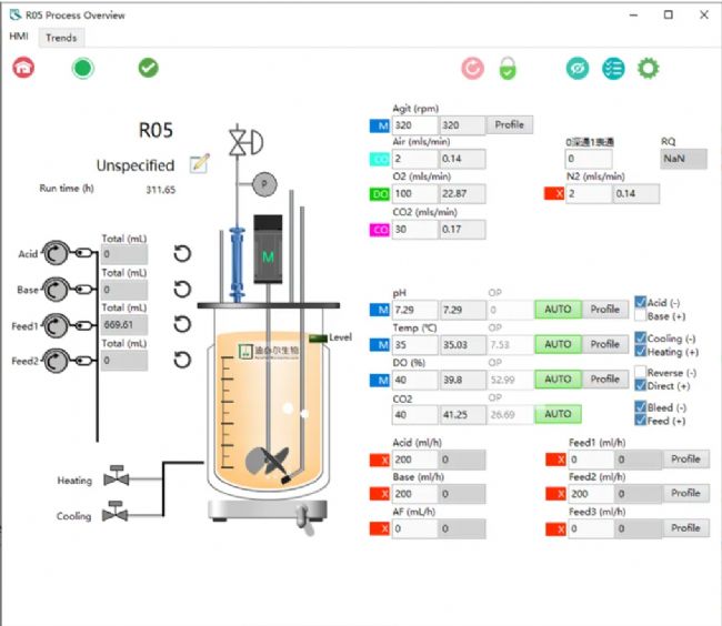 隨后,通過(guò)Air和CO₂與CO₂電極級(jí)聯(lián)控制,實(shí)現(xiàn)反饋控制,將培養(yǎng)過(guò)程中的pCO₂控制在設(shè)定值附近。最終實(shí)現(xiàn)pCO₂全過(guò)程可監(jiān)控,可控制,為研究人員的工藝優(yōu)化提供新的研究方向。