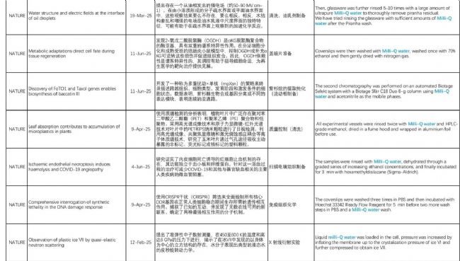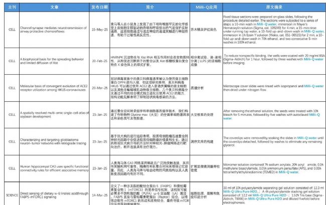 據(jù)統(tǒng)計(jì),2025年上半年在CNS期刊的主刊及其子刊所發(fā)表的文章中,有約850篇科學(xué)文章/論文引用到了“Milli-Q®”的純水或超純水,其中包含約20篇主刊文章。