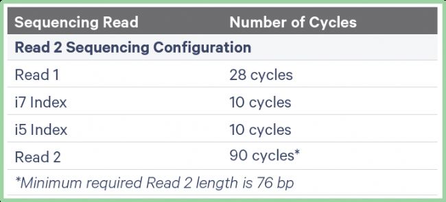 建議將GEM-X Flex CRISPR 篩選文庫(kù)與基因表達(dá)文庫(kù)混合二者混合,以在測(cè)序過(guò)程中維持核苷酸多樣性。GEM-X Flex 基因表達(dá)文庫(kù)的建議最低測(cè)序深度為 10,000 read Pairs / 細(xì)胞,GEM-X Flex CRISPR 篩選文庫(kù)的建議最低測(cè)序深度為 5,000 read pairs / 細(xì)胞。圖8和圖9 分別展示了兩文庫(kù)結(jié)構(gòu)及測(cè)序讀長(zhǎng)建議。