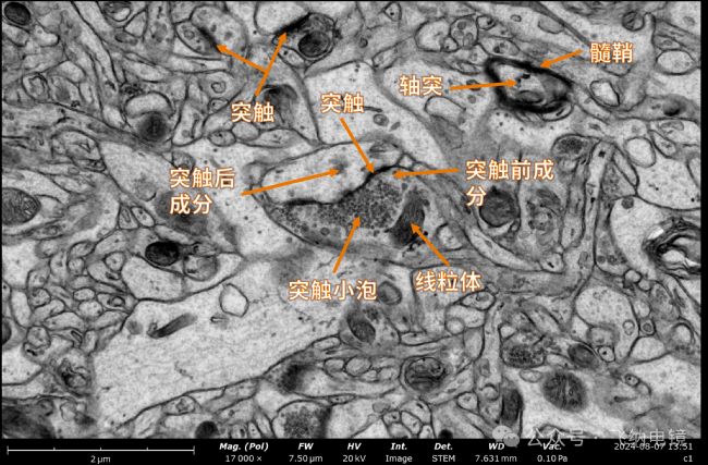 神經(jīng)科學(xué)與生命科學(xué)研究的發(fā)展,離不開先進(jìn)顯微技術(shù)的支持。掃描電鏡憑借高分辨率與立體成像優(yōu)勢,已成為解析神經(jīng)元超微結(jié)構(gòu)與突觸連接的重要工具。作為全球領(lǐng)先的臺式電鏡品牌,飛納電鏡推出的 Pharos STEM 生物電鏡,將場發(fā)射技術(shù)與便捷操作相結(jié)合,為科研人員提供高效、直觀的成像體驗。從神經(jīng)元胞體、樹突到化學(xué)突觸的超微結(jié)構(gòu),生物電鏡能夠在納米尺度下清晰展現(xiàn)細(xì)胞器與膜結(jié)構(gòu)細(xì)節(jié),為神經(jīng)系統(tǒng)功能研究提供關(guān)鍵證據(jù)。飛納電鏡不僅降低了電鏡操作的門檻,更助力生命科學(xué)、醫(yī)學(xué)和教育領(lǐng)域快速開展實驗觀察,加速科研成果的產(chǎn)生。