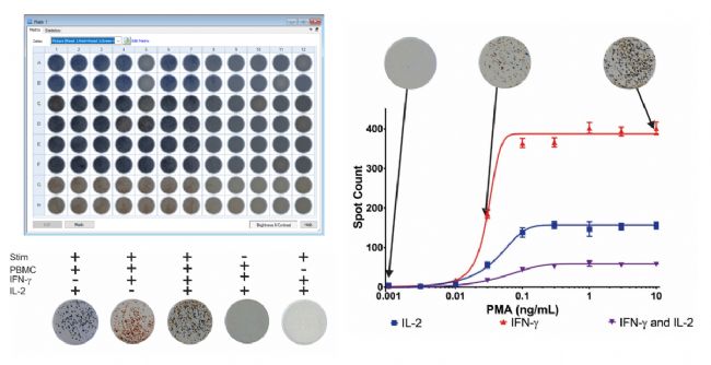 在以上研究工作中,Cytation7 主要承擔(dān)了抗原特異性 T 細(xì)胞功能評估的 ELISpot 實驗。