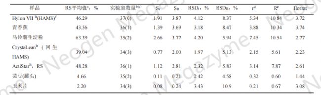 表 2:酶解法測定淀粉樣品和選定植物原料中抗性淀粉含量的方法性能(AOAC/AACC 實驗室間研究結(jié)果)