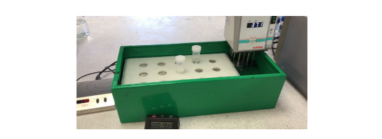 圖3.孵化方法2。樣品(約1.0 g)裝在Fisherbrand瓶中,置于水浴中2mg Mixdrive 15®潛水磁力攪拌器上。這種布置允許在受控速度(170 rpm)和37°C下攪拌15個(gè)樣品。