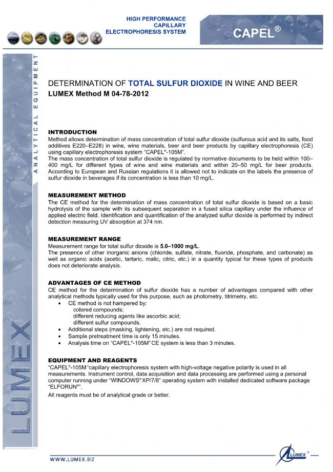 葡萄酒和啤酒中二氧化硫的測定-LUMEX毛細管電泳法