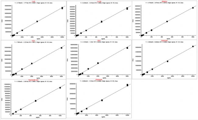 圖2:8種強極性毒物色譜圖,具有良好的分離效果,證明了方法的有效性