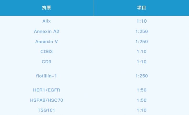 本篇文章介紹以“人血漿、人血清、人A549細胞(肺泡基底上皮腺癌細胞)”三種外泌體標(biāo)準(zhǔn)品為對象,驗證下表中抗體的有效性的結(jié)果: