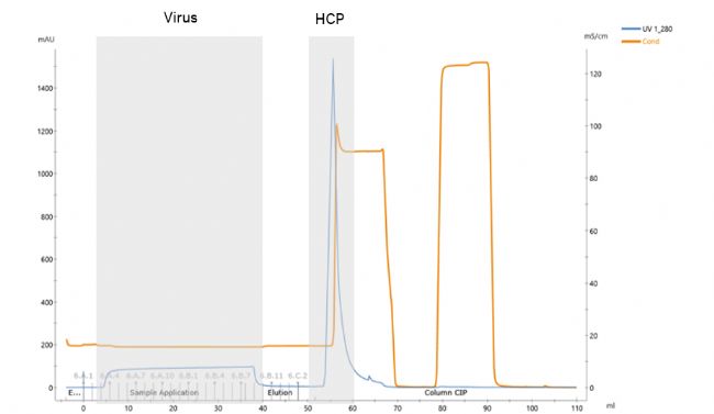 溫和且快速的純化工藝:Hollow Fiber因為條件溫和,剪切力低,對于自身穩(wěn)定性差的慢病毒較為友好,所以選用Hollow Fiber對慢病毒進行濃縮/換液。Cytiva的Capto Core 700層析為流穿模式,在保證雜質(zhì)去除能力的前提下工藝時間更短,Capto Core 700層析回收率可以達到90%。