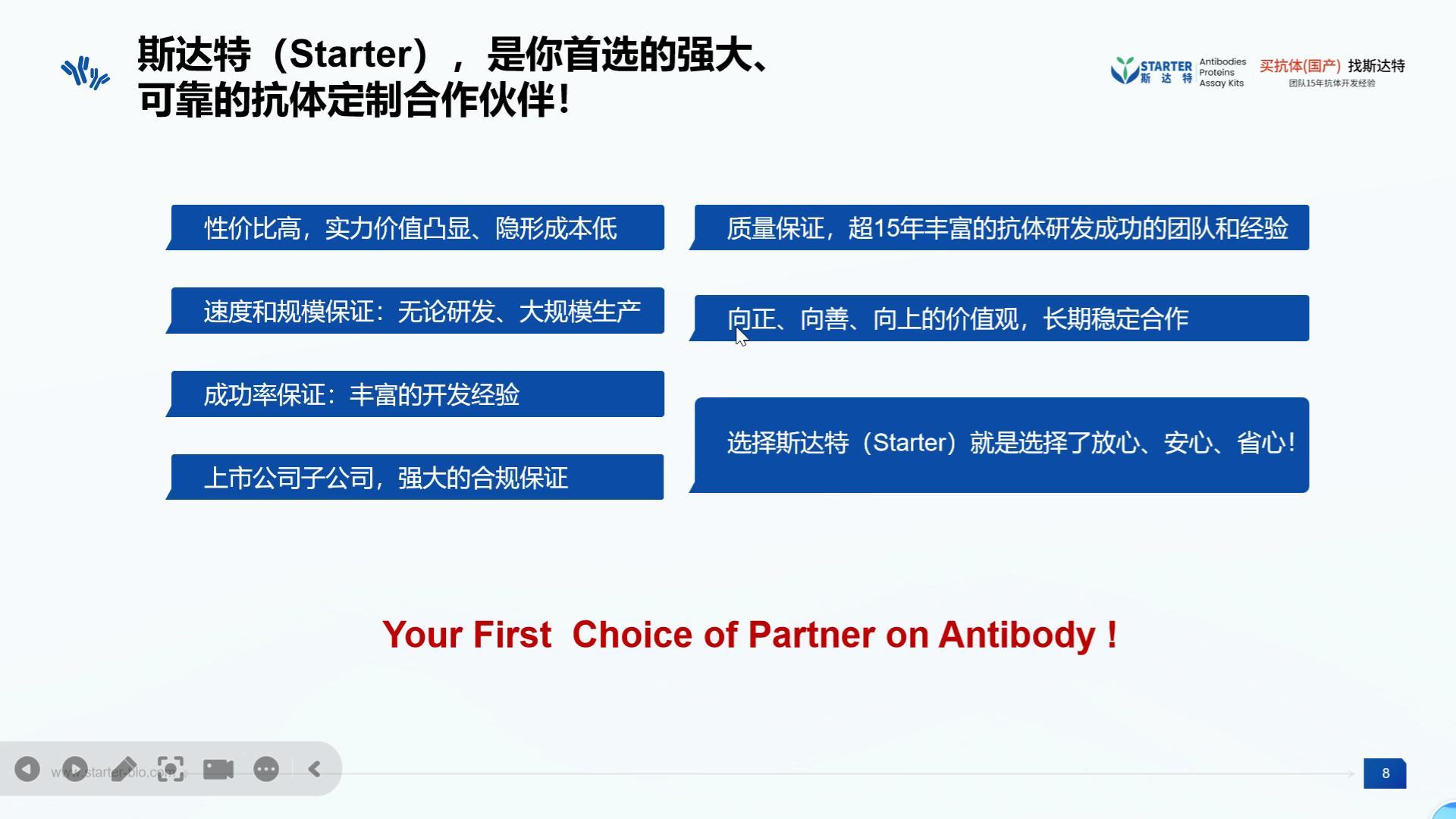 本視頻介紹了國產(chǎn)抗體專家斯達特生物的產(chǎn)品信息以及定制服務,包括自產(chǎn)抗體、Elisa試劑盒、重組蛋白定制等。