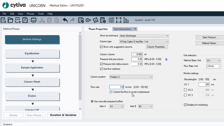 使用UNICORN軟件編輯方法自動(dòng)運(yùn)行純化實(shí)驗(yàn)